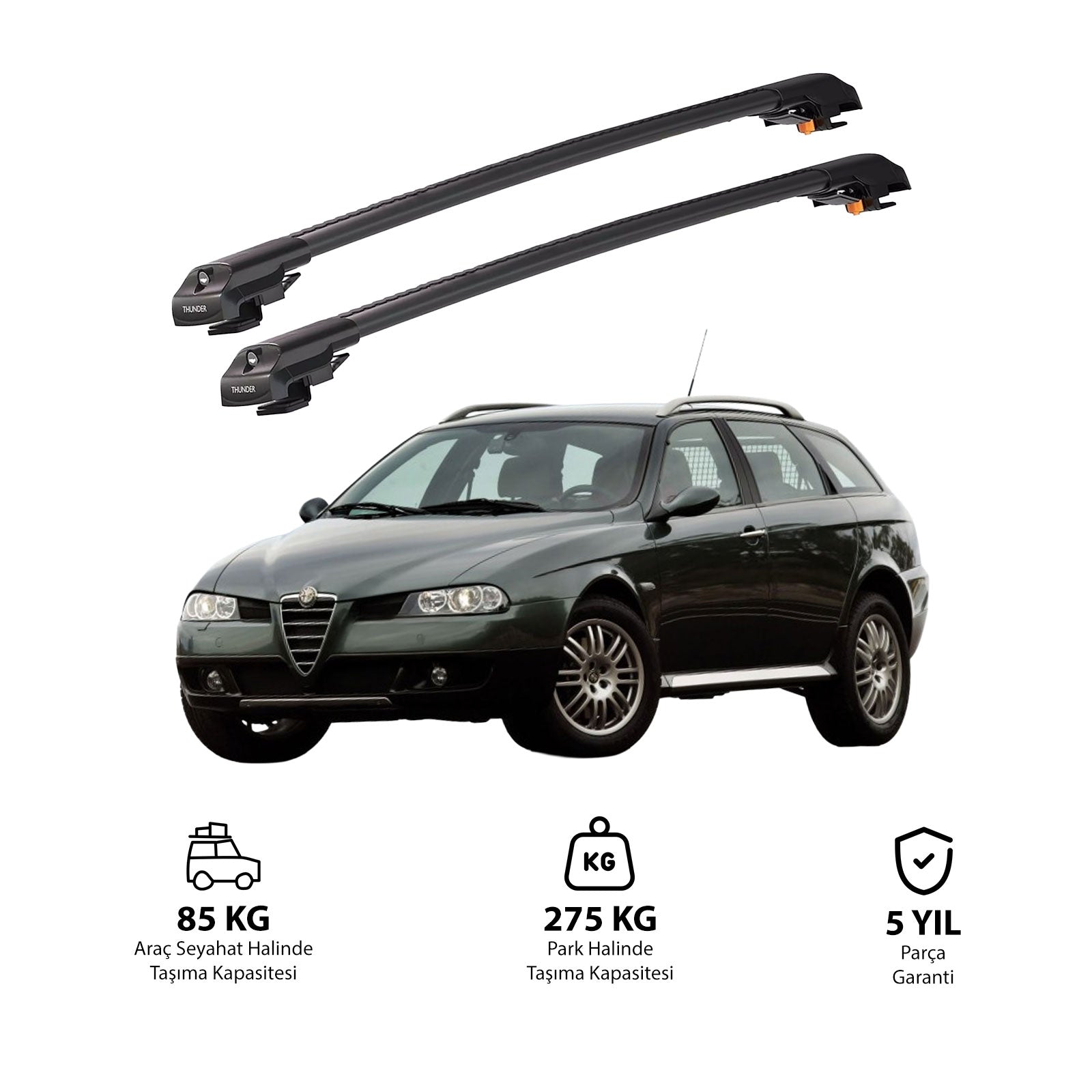 TRX1 Thunder Carrier Kilitli Ara Atkı, özellikle ALFA ROMEO 156 CROSSWAGON (T932) 2000-2007 yıllarındaki araçlarına uyumlu olarak tasarlanmış, aracınızın tavanına monte edilen ve taşıma kapasitesini önemli ölçüde artıran bir üründür. Bu ürün,bisiklet, kayak, snowboard, merdiven, çadır ve bagaj gibi birçok farklı eşyayı güvenli bir şekilde taşımanızı sağlar.