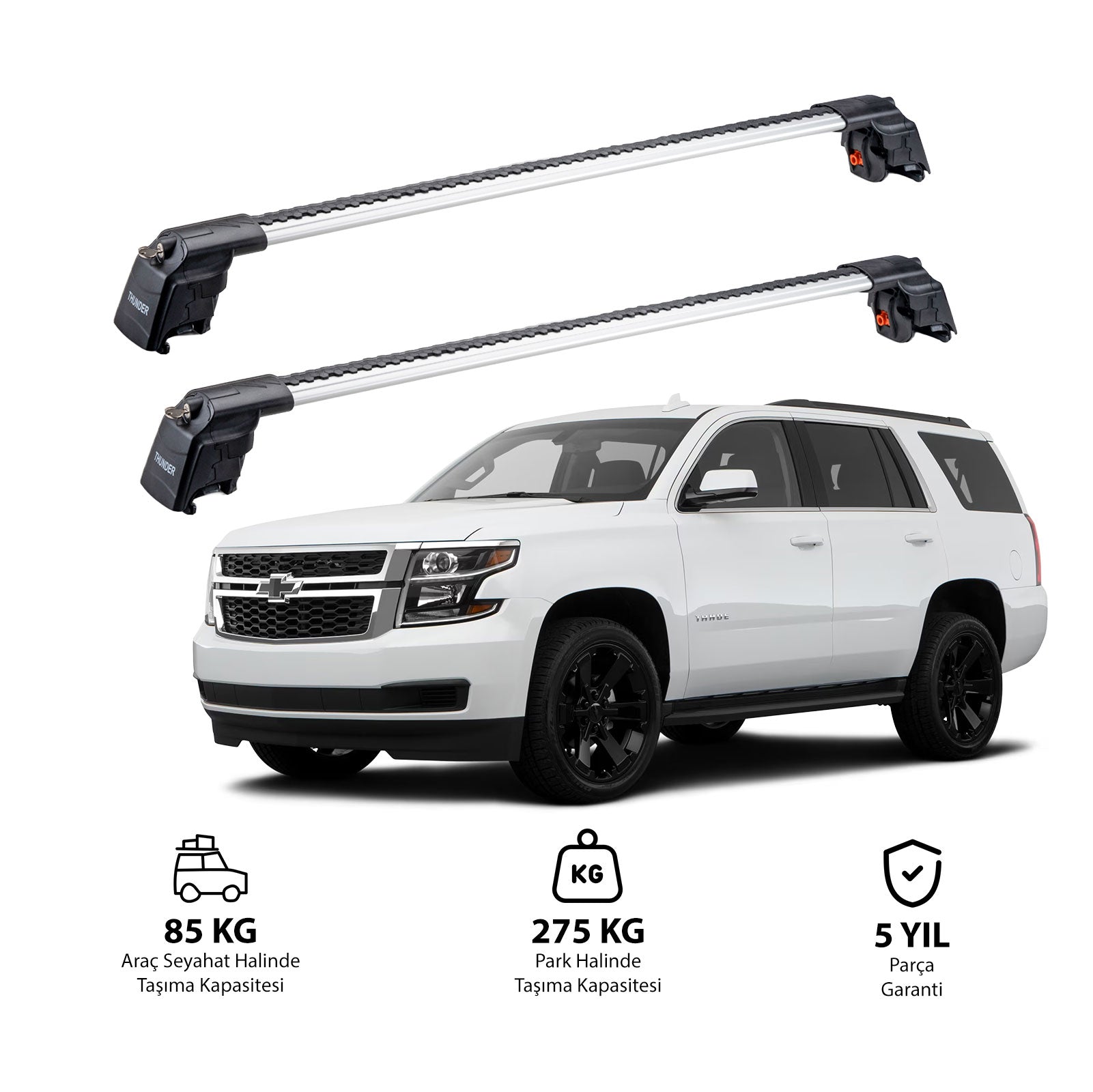 CHEVROLET TAHOE 2015-2020 modeliniz için özel olarak tasarlanmış TRX2 Thunder Carrier ara atkı, aracınızın tavanına monte edilerek ek taşıma alanı sunar. Bisiklet, kayak, snowboard, bagaj gibi eşyalarınızı güvenle taşıyabilir,aracınızın iç hacmini boşaltabilirsiniz.