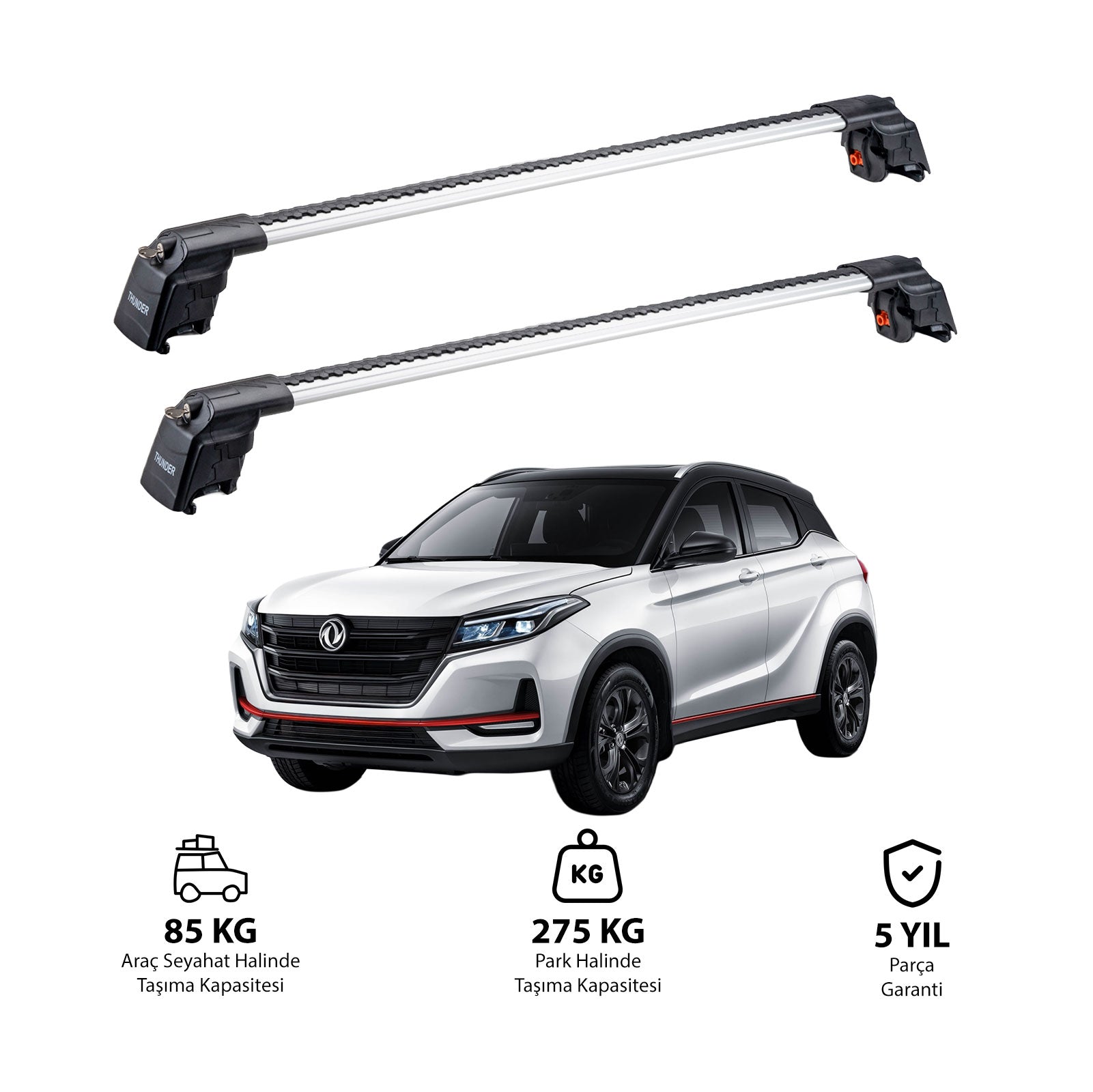 DONGFENG FENGON 500 2020-Sonrası modeliniz için özel olarak tasarlanmış TRX2 Thunder Carrier ara atkı, aracınızın tavanına monte edilerek ek taşıma alanı sunar. Bisiklet, kayak, snowboard, bagaj gibi eşyalarınızı güvenle taşıyabilir,aracınızın iç hacmini boşaltabilirsiniz.