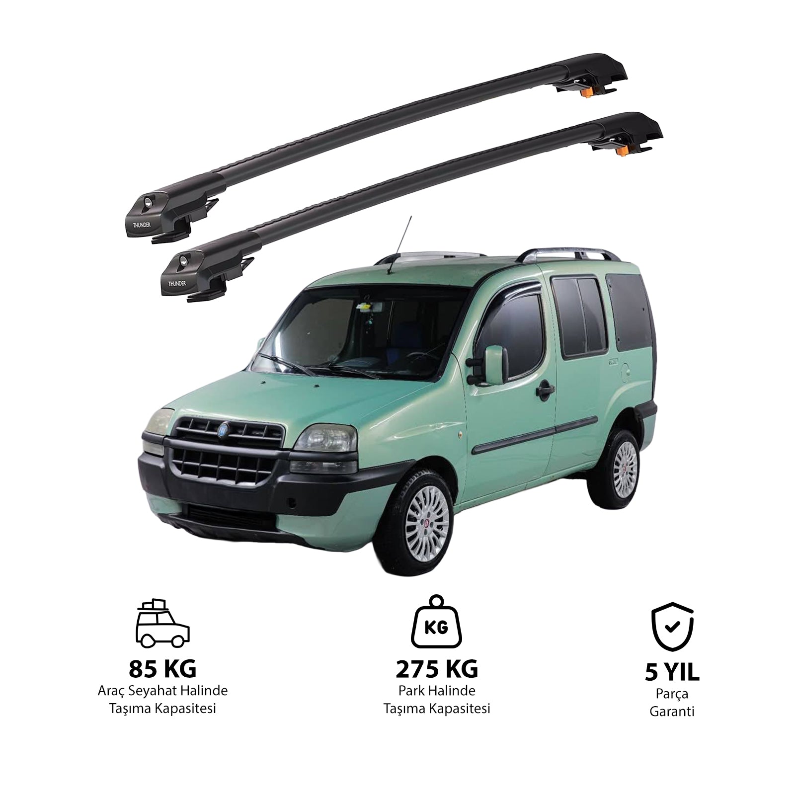 TRX1 Thunder Carrier Kilitli Ara Atkı, özellikle FIAT DOBLO 2000 - 2006 yıllarındaki araçlarına uyumlu olarak tasarlanmış, aracınızın tavanına monte edilen ve taşıma kapasitesini önemli ölçüde artıran bir üründür. Bu ürün,bisiklet, kayak, snowboard, merdiven, çadır ve bagaj gibi birçok farklı eşyayı güvenli bir şekilde taşımanızı sağlar.