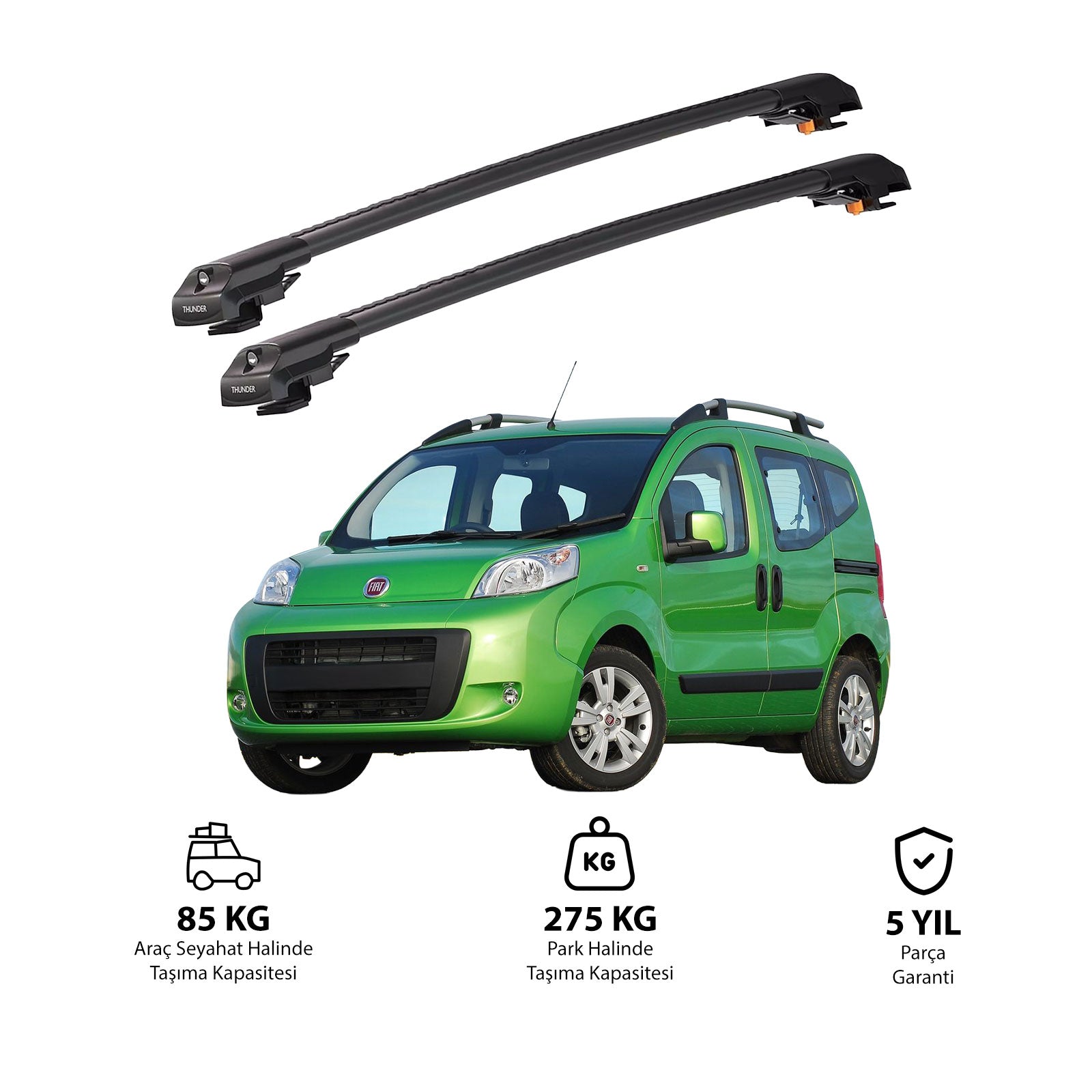 TRX1 Thunder Carrier Kilitli Ara Atkı, özellikle FIAT QUBO 2008-2017 yıllarındaki araçlarına uyumlu olarak tasarlanmış, aracınızın tavanına monte edilen ve taşıma kapasitesini önemli ölçüde artıran bir üründür. Bu ürün,bisiklet, kayak, snowboard, merdiven, çadır ve bagaj gibi birçok farklı eşyayı güvenli bir şekilde taşımanızı sağlar.
