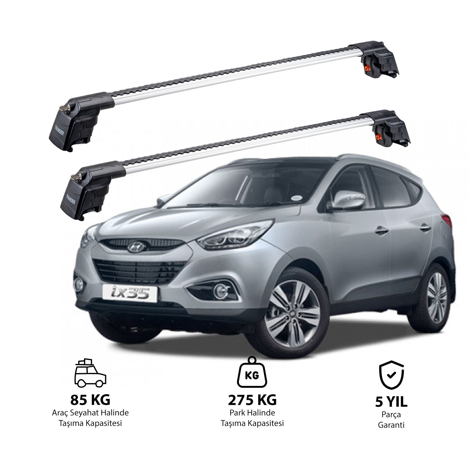 HYUNDAI IX-35 2010-2015 modeliniz için özel olarak tasarlanmış TRX2 Thunder Carrier ara atkı, aracınızın tavanına monte edilerek ek taşıma alanı sunar. Bisiklet, kayak, snowboard, bagaj gibi eşyalarınızı güvenle taşıyabilir,aracınızın iç hacmini boşaltabilirsiniz.
