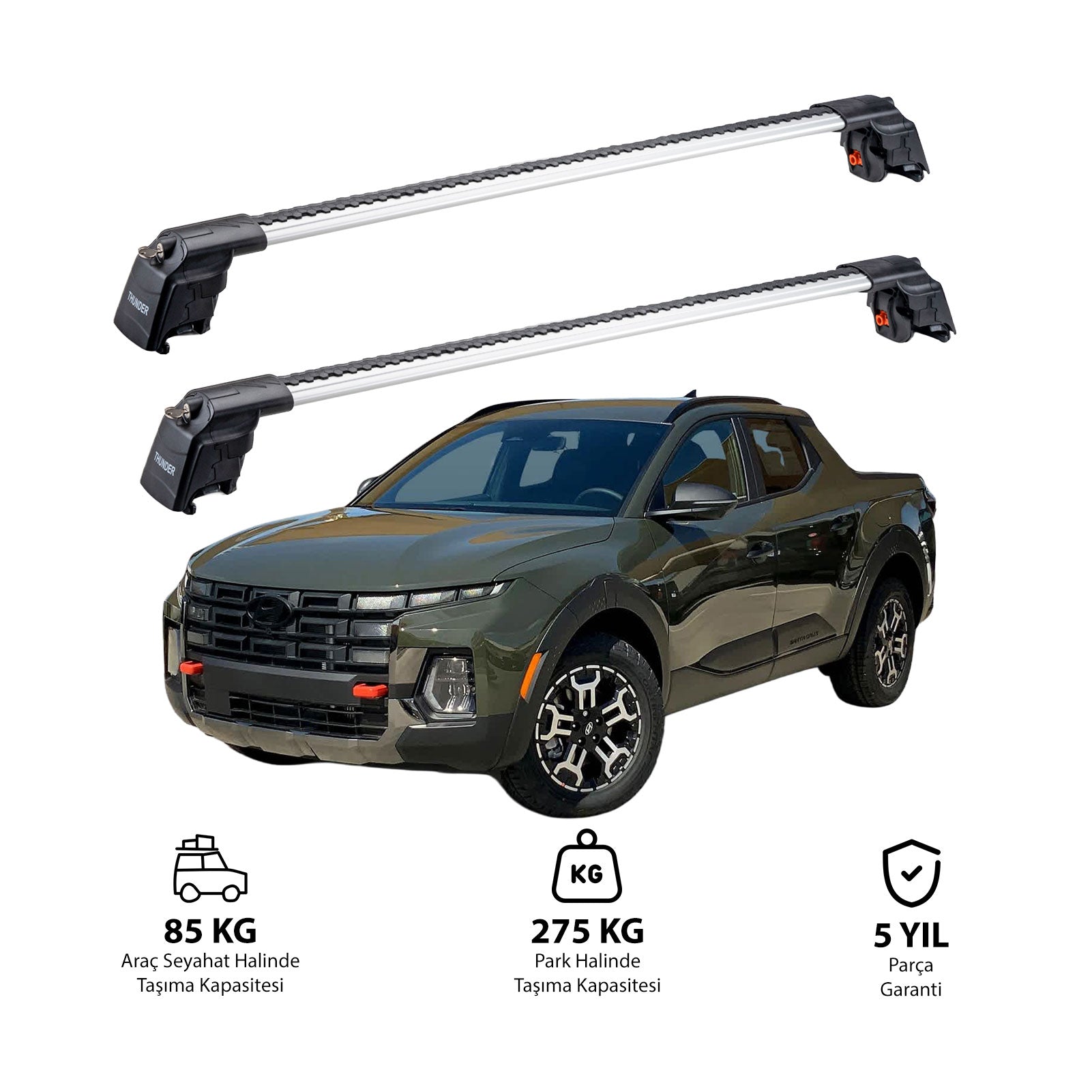 HYUNDAI SANTA CRUZ 2022-Sonrası modeliniz için özel olarak tasarlanmış TRX2 Thunder Carrier ara atkı, aracınızın tavanına monte edilerek ek taşıma alanı sunar. Bisiklet, kayak, snowboard, bagaj gibi eşyalarınızı güvenle taşıyabilir,aracınızın iç hacmini boşaltabilirsiniz.