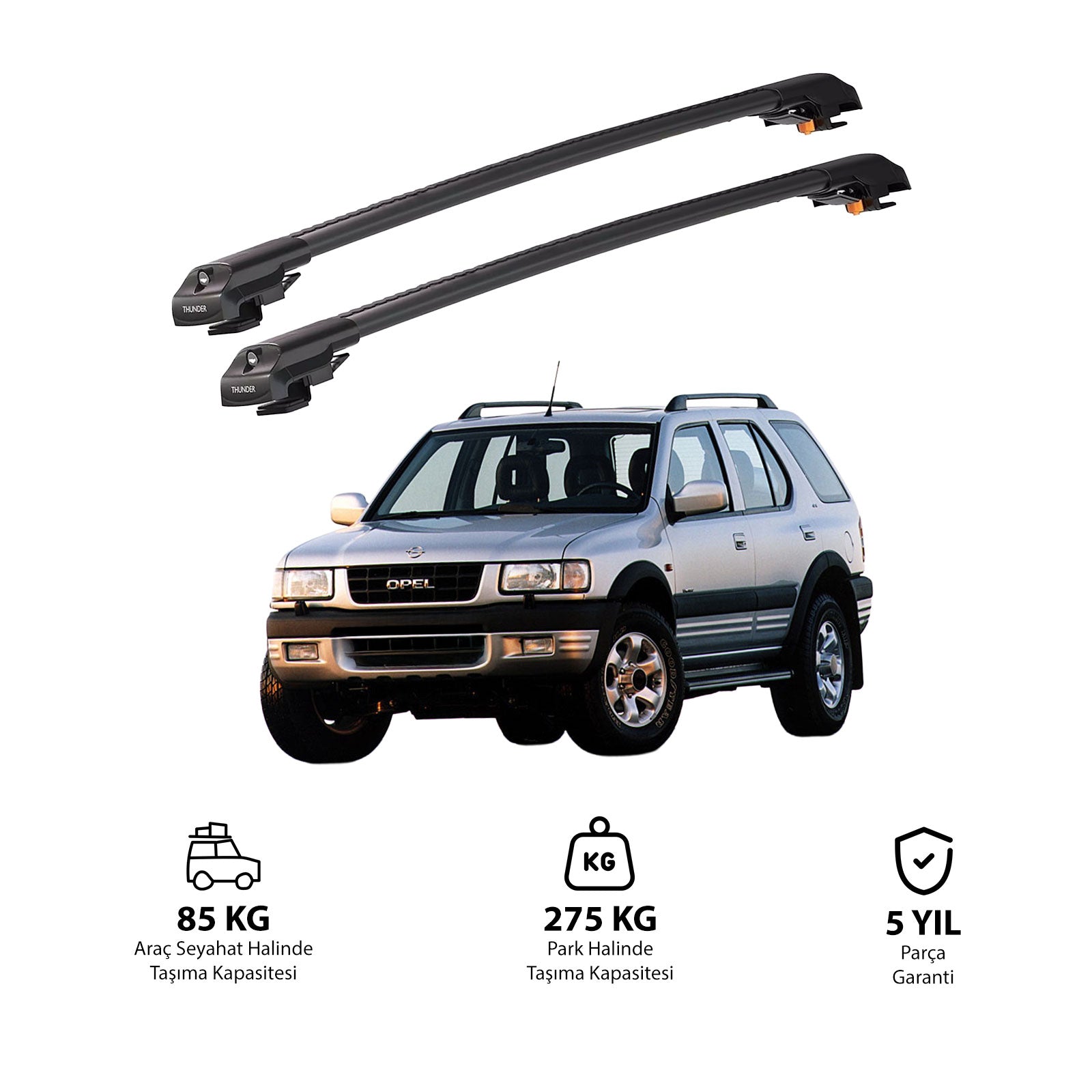 TRX1 Thunder Carrier Kilitli Ara Atkı, özellikle OPEL FRONTERA 1992-1998 yıllarındaki araçlarına uyumlu olarak tasarlanmış, aracınızın tavanına monte edilen ve taşıma kapasitesini önemli ölçüde artıran bir üründür. Bu ürün,bisiklet, kayak, snowboard, merdiven, çadır ve bagaj gibi birçok farklı eşyayı güvenli bir şekilde taşımanızı sağlar.