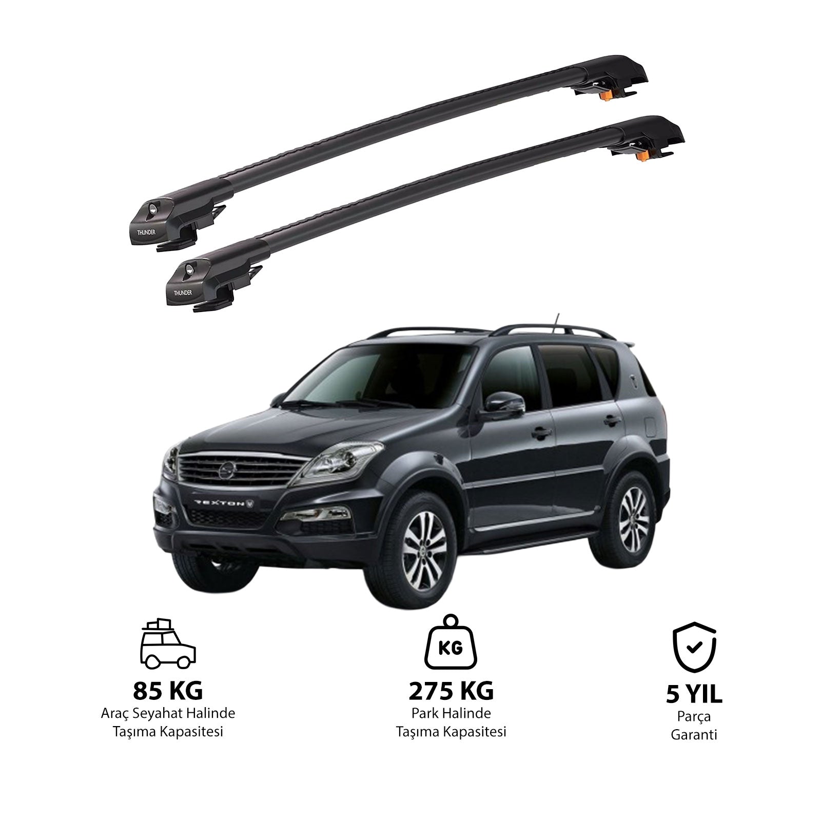 TRX1 Thunder Carrier Kilitli Ara Atkı, özellikle SSANGYONG REXTON 2006-2012 yıllarındaki araçlarına uyumlu olarak tasarlanmış, aracınızın tavanına monte edilen ve taşıma kapasitesini önemli ölçüde artıran bir üründür. Bu ürün,bisiklet, kayak, snowboard, merdiven, çadır ve bagaj gibi birçok farklı eşyayı güvenli bir şekilde taşımanızı sağlar.