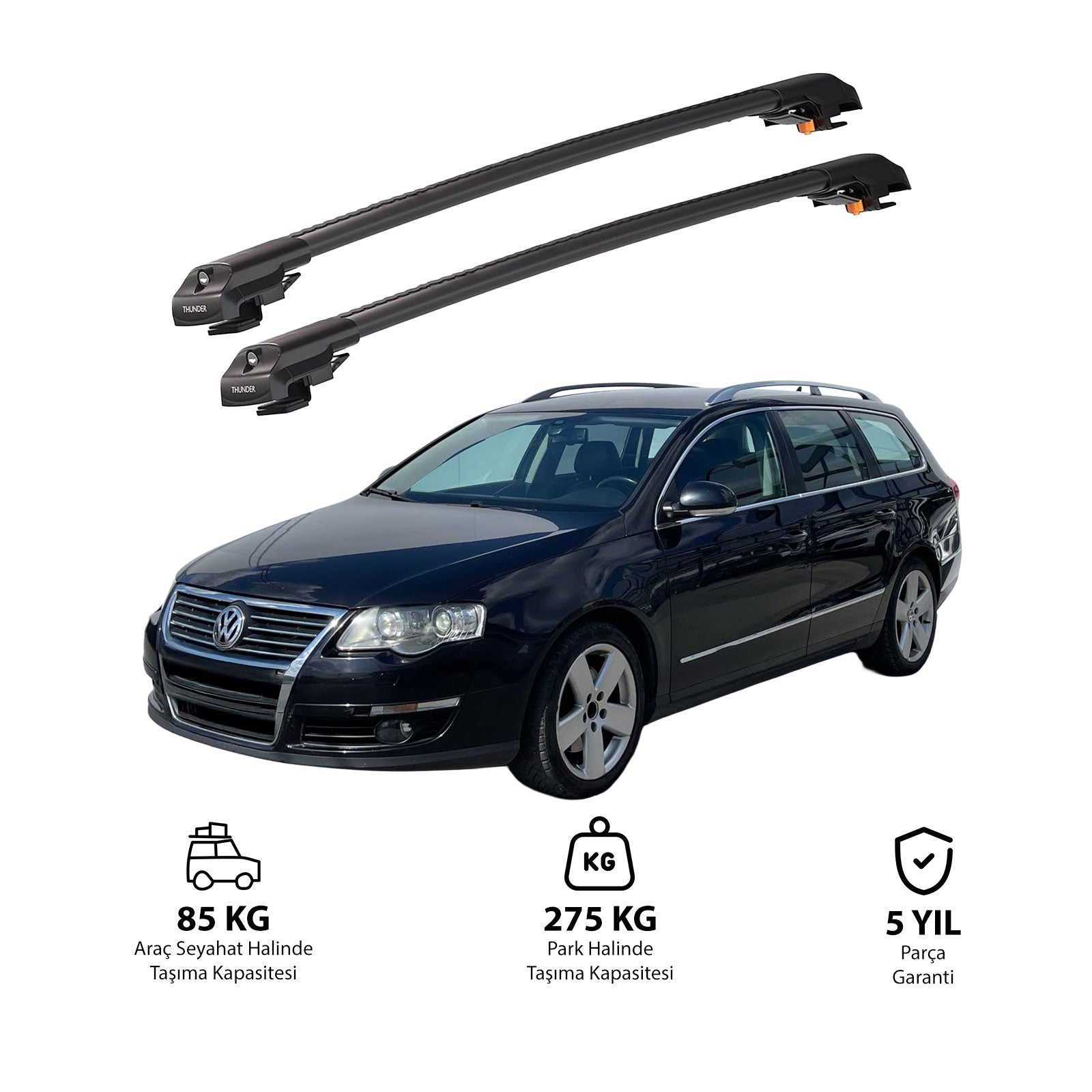 TRX1 Thunder Carrier Kilitli Ara Atkı, özellikle VOLKSWAGEN PASSAT VARIANT 2005-2010 yıllarındaki araçlarına uyumlu olarak tasarlanmış, aracınızın tavanına monte edilen ve taşıma kapasitesini önemli ölçüde artıran bir üründür. Bu ürün,bisiklet, kayak, snowboard, merdiven, çadır ve bagaj gibi birçok farklı eşyayı güvenli bir şekilde taşımanızı sağlar.